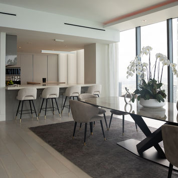 A residential high-rise interior upgrade that included hardwood flooring installation, dropped ceiling construction, integrated lighting systems, and full bathroom renovations, executed with precision detailing and seamless coordination across finish trades.